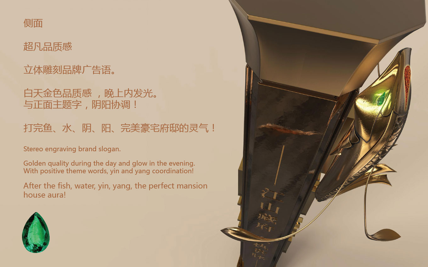 碧桂园集团与人和时代集团长期战略合作伙伴,为库内单位,碧桂园·阅江府地产楼盘标识设计、一眼千年,宛如初见。中国人之所以与众不同,是因为他们既生活在过去,又生活在未来。标识设计以敬一方山灵水秀。上接云南,纵贯广西和广东,通江达海,自古以来就是连接西南和华南的“黄金水道”这是经济的脉搏、文化的沃土、更是端州人的根。千年端州史一座阅江府。碧桂园·阅江府位于肇庆市端州城东新区板块肇庆一中高中部新校区旁,项目离尘不离城,作为城东滨江首席江景豪宅标杆,既享有丰富的城市配套,更拥有端州稀缺的江景资源,项目南向望江,拥有宽阔江景景观面,东南远眺羚羊峡,可谓江、山、城三景合一。整体的标识精神保垒设计把标志中的金鱼以活灵活灵的形式呈现,以达到主题与项目的完美结合,并有很可的视觉冲击力。