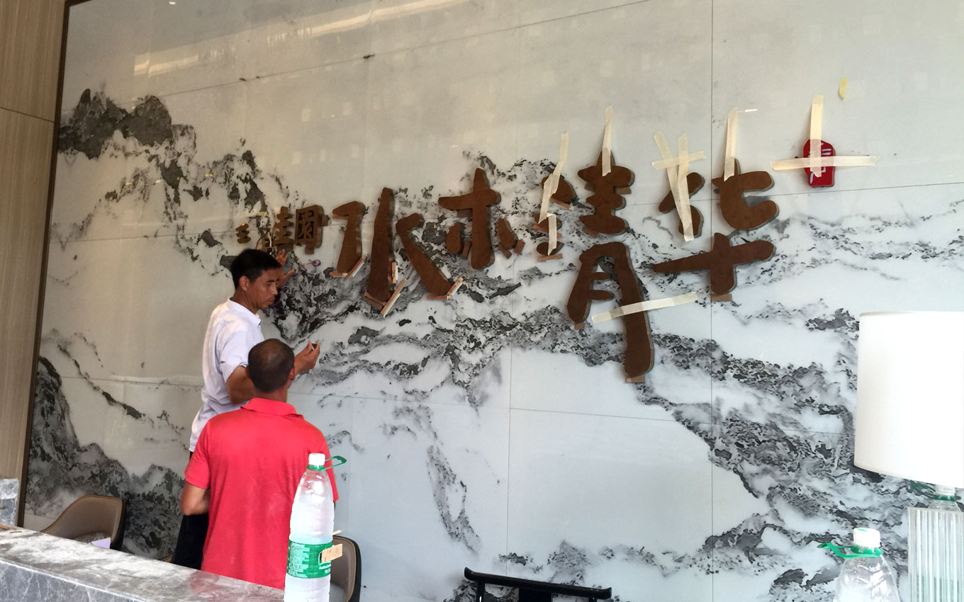 水木清华的标识设计,以“书香觅知己、童心共成长”的设计概念,把中国的书法,书卷气的卷轴文化结合起来,再以自然的木色、与中国的古铜相结合,人和时代以香港精工的制作工艺,完美的制作呈现,从设计、制作、安装360度全案完成。