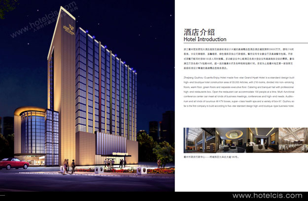 酒店建筑面积33000万方,拥有216间客房,分设无烟楼层、温馨楼层、绿色楼层及独立行政楼层。餐饮设有开放式西餐厅、大型专业宴会厅、高端餐饮包厢30间,能同时容纳1000多人同时就餐。多功能会议中心及大小会议室5间,能满足各类大型会议和高端商务洽谈的需要。娱乐设有豪华演艺厅及各类KTV包厢48间,超一流的健康水疗及各种规格包厢67间。是衢州地区第一家五星级高端精品型商务酒店。