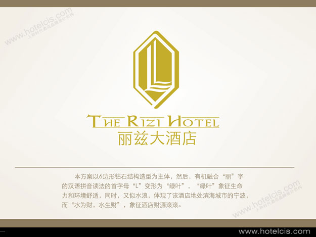 人和时代设计创意以6边形钻石结构造型为主休,然后有机融合“丽”字的汉语拼音读法的首字母“L”变形为“绿叶”,“绿叶”象征生命为和环境舒适,同是,又似水浪,体现了该酒店地处滨海城市的宁波,而“水为财,水生财”,象征酒店财源滚滚。