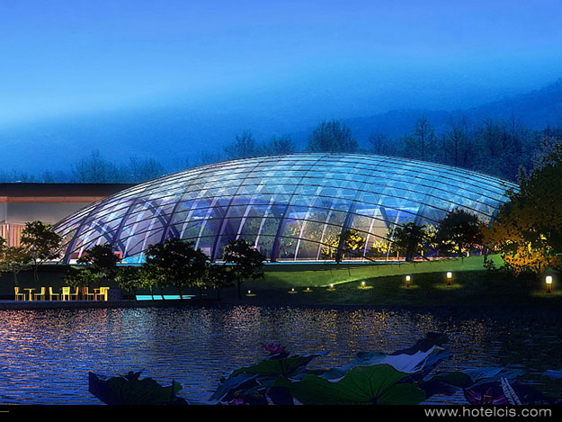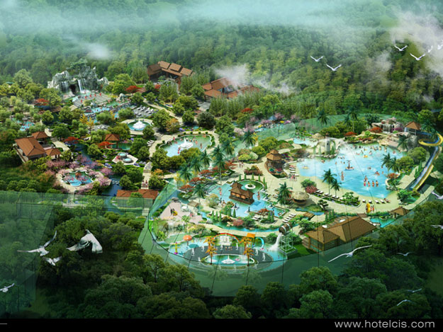 悦兮·半岛国际温泉度假村·温泉“水立方”是世界最大的室内温泉馆; 具有国际一流水准的大型温泉度假胜地,总投资10亿元人民币,设施有豪华五星级度假酒店、VIP别墅、室内外温泉浴池、SPA私人休闲会所、高尔夫练习场等。