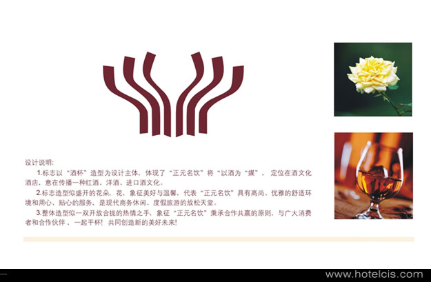 2.标志造型似盛开的花朵,花,象征美好与温馨,代表“正元名饮”具有高尚、优雅的舒适环境和用心、贴心的服务,是现代商务休闲、度假旅游的放松天堂。