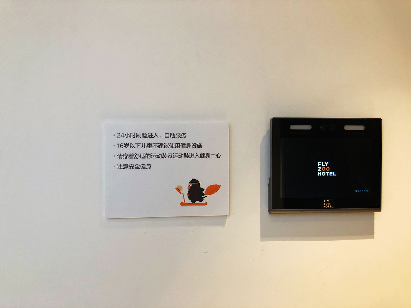在这里能感觉到进入菲住布渴酒店大堂,设计未来感十足,进入大堂即有电子显示的标识,人和时代标识公司把阿里橙色在标识设计中的应用,简结的标识及立体字。并配有自助机就开始进行人脸识别。阿里方面就声称菲住布渴是全球第一家支持全场景刷脸的酒店。在整个入住体验中钛媒体也发现,包括电梯、房间、餐厅、健身房、酒吧等多个场景内都有人脸识别科技的应用。