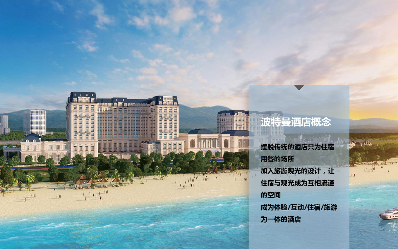 法兰西经典皇室风情之滨海酒店,摆脱传统的酒店只为住宿用餐的场所加入旅游观光的设计,让住宿与观光成为互相流通的空间,成为体验/互动/住宿/旅游为一体的酒店。